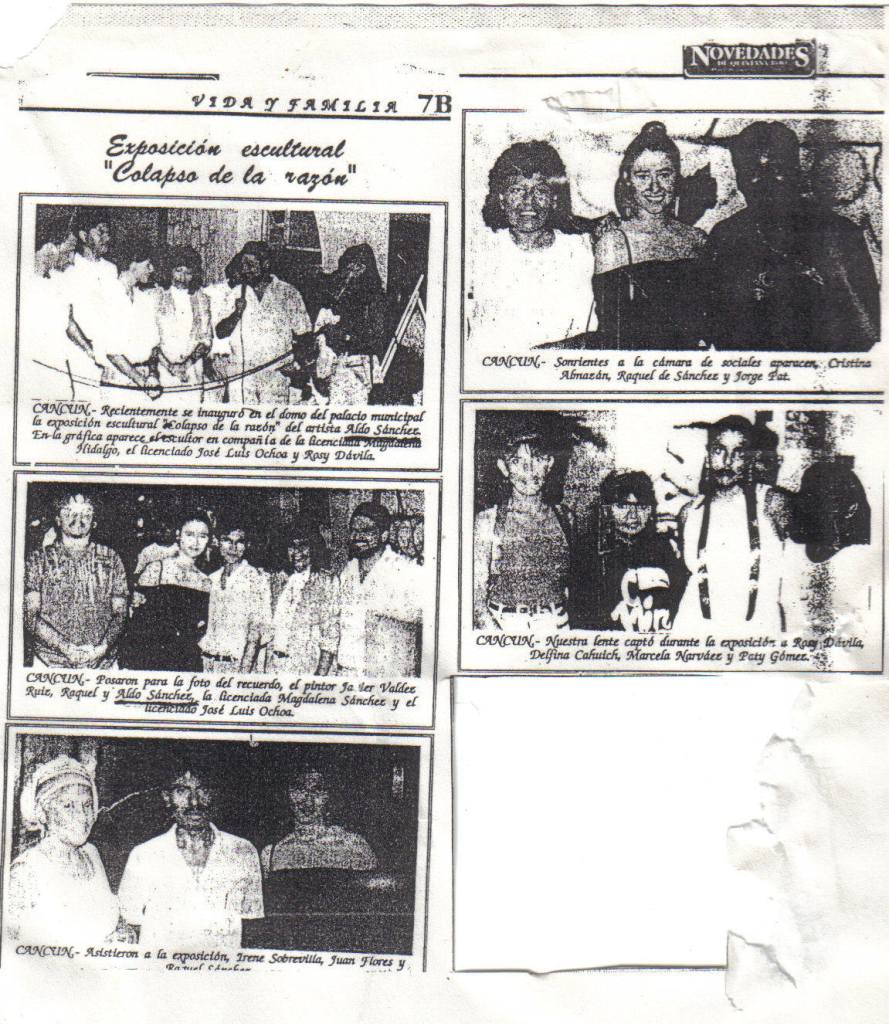 Quizás la nostalgia de la ciudad, de la familia o de lo que fuera, me hizo regresar brevemente para casarme y hacer residencia tres años allá. Porque así se escriben los cuentos de hadas, el joven príncipe se casa con la bella joven, se van a una ciudad de ensueño… ja ja ja En poco tiempo me invitaron a dar clases (anteriormente había dado clases para pagar gastos de la preparatoria de inglés, grecolatinas, ajedrez y declamación). En 1991 presenté mi primera exposición como adulto «El Colapso de la Razón» en el Palacio de Gobierno de Cancún Quintana Roo.